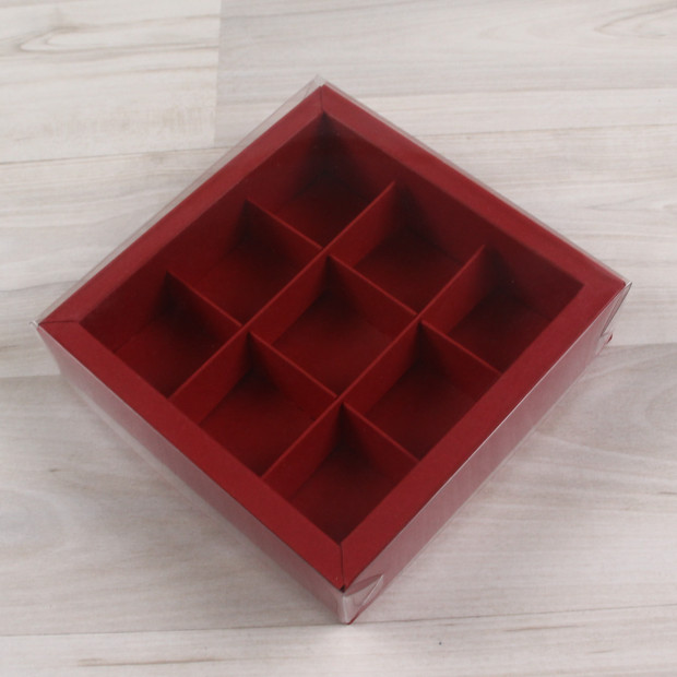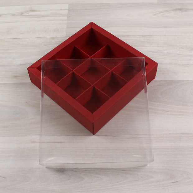 Коробка на 9 конфет из дизайнерского картона. Глухая прозрачная ПВХ.