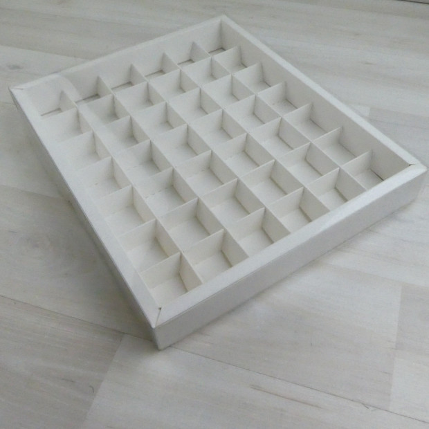 Коробка поставляется в виде заготовки и требует сборки. Вкладыш-разделитель на 42 конфеты входит в комплект. Пожалуйста, помните, что коробки тиражом более 10шт можно заказать только кратно десяти.